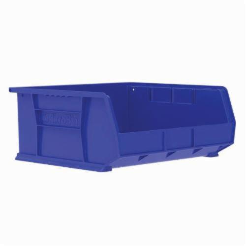 Akro-Mils® Hang and Stack Bin, Series: 30250, 14-3/4 in Outside Length, 16-1/2 in Outside Width, 7 in Outside Height, 14 in Inside Length, 14-3/4 in Inside Width, 6-3/4 in Inside Height, 75 lb, Industrial Grade Polymer, Blue, Use Divider Number: 40245, 40245CRY, 41250, 3 Divider Slots Long, 3 Divider Slots Small