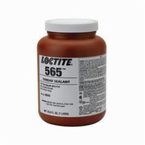 Loctite® Thread Sealant, 1-Part, Series: 565™, PST®, Bottle, 1 L, Methacrylate Ester Base, Composition: Polyglycol Dimethacrylate, Ethane, Tetrafluoro, Homopolymer Titanium Dioxide, Treated Fumed Silica, Saccharin, Cumene Hydroperoxide, Ethylene Glycol, Cumene, Liquid/Paste, 72 hr Curing, White, Mild, -65 to 300 deg F, 1.1 Specific Gravity, 199.4 deg F Flash, 1.06 g/L VOC, 300000 cPs Viscosity Rating, Applicable Materials: Metal, 25 psi Tensile, 145 psi Shear Strength