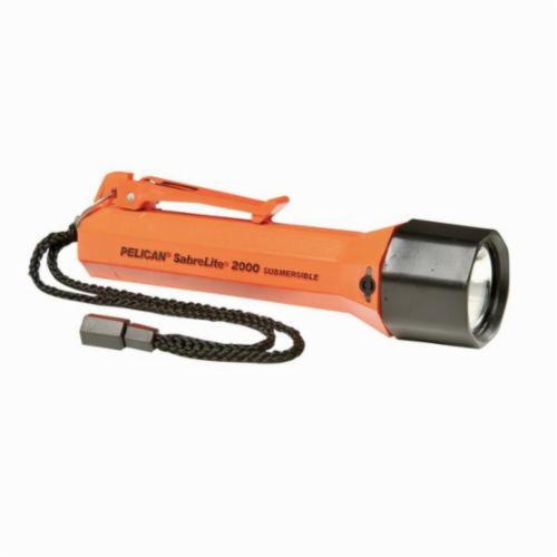Pelican™ SabreLite™ Flashlight, Industrial Grade, Series: 2000, 4.5 V, Xenon Bulb, 1 Bulbs, 53, 5 hr Average Life, 3 x C Alkaline Battery Type, Orange, ABS Plastic Housing, IPX7 Enclosure, 7.8 in